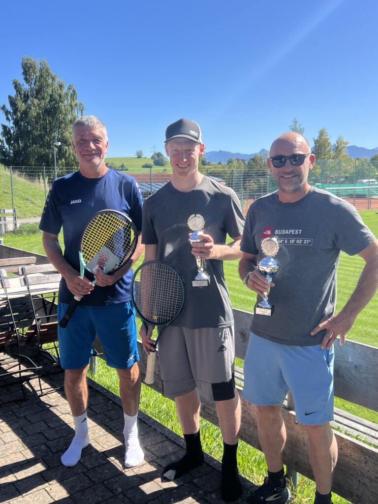 16 Herren wollten es auch in diesem Jahr wieder wissen und bildeten das Starterfeld der diesjährigen Clubmeisterschaften. Bestens vorbereitet und organisiert von Sepp Haf wurden in zwei Achtergruppen die Paarungen ausgelost. Der Gewinner durfte sich weiter im Siegerfeld behaupten, während die unterlegenen Spieler in der B-Runde ihren Besten ermittelten. So gab es bereits in der Vorrunde durchaus interessante Spiele, in denen auch die „Underdogs“ für Überraschungen sorgten und keinesfalls nur als „Kanonenfutter“ herhielten. Bei allem Siegeswillen ging es in den Paarungen immer fair zur Sache, letztendlich sollte ja auch der Spaß immer mit im Spiel sein. Keine große Überraschung gab es beim Finale der Hauptrunde, das die beiden Top gesetzten Hansi Rindle und Thomas Moller erreichten. Im Endspiel tat sich der Altmeister Rindle im ersten Satz noch etwas schwer und machte es bei hochsommerlichen Temperaturen seinem Gegenüber etwas zu einfach. Der profitierte von den Fehlern seines Gegners und hatte zudem den Vorteil, mit ein paar Jährchen jünger etwas mehr Power auf den Platz zu bringen zu können. Mit 6:1 für Thomas Moller endete der erste Satz. Im zweiten Satz boten sich Hansi Rindle durchaus Chancen, das Spielgeschehen mehr zu seinen Gunsten zu drehen. Aber auch hier war dann in den teilweise sehr langen Ballwechseln die Fehlerquote etwas höher als beim Kontrahenten Thomas Moller, der am Ende auch diesen Satz mit 6:4 für sich entscheiden konnte und damit verdienter neuer Clubmeister wurde. Die B-Runde konnte erstmalig nach harten Auseinandersetzungen in den Vorrunden Werner Eberle für sich entscheiden. Er traf im Endspiel auf Otto Hurler, der gegen den an diesem Tag sehr sicher und stark aufspielenden Eberle nur wenig Chancen hatte. Verdient gewann Werner Eberle mit 6:3 und 6:1.